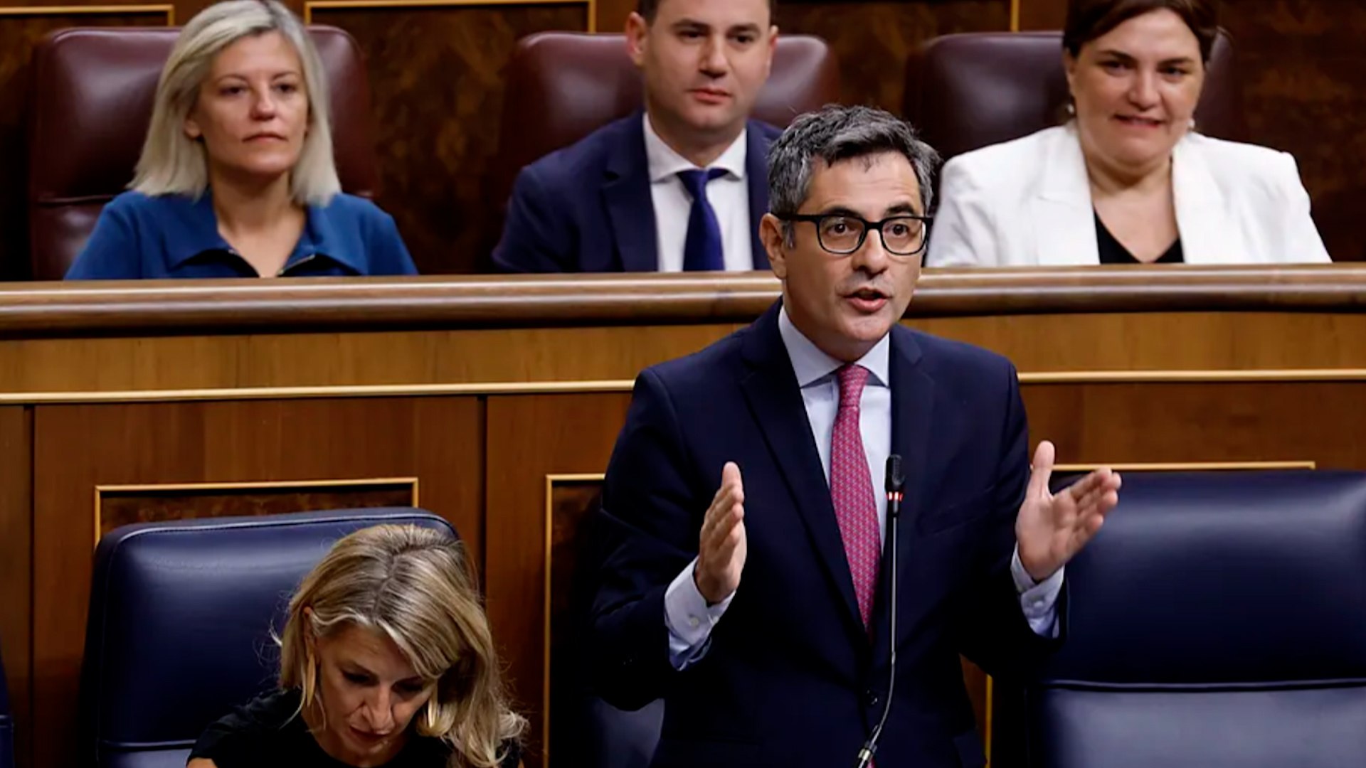La respuesta de Bolaños ha sido la de calificar a los populares de "ridículamente apocalípticos" y ha asegurado que España "vive un momento dulce en lo económico, en lo social y en lo institucional con los tres poderes del Estado funcionando con normalidad".